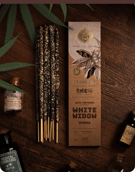 Os terpenos são compostos orgânicos encontrados em diversas plantas, incluindo a cannabis. Estes incensos com terpenos de cânhamo da variedade White Widow trazem notas terrosas e picantes à mistura, criando uma sinergia aromática única.