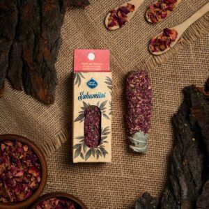 Composição: Ervas aromáticas, resinas naturais, óleo aromático concentrado, aglutinante natural e sal.
